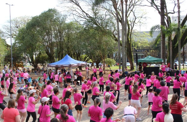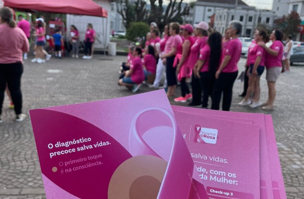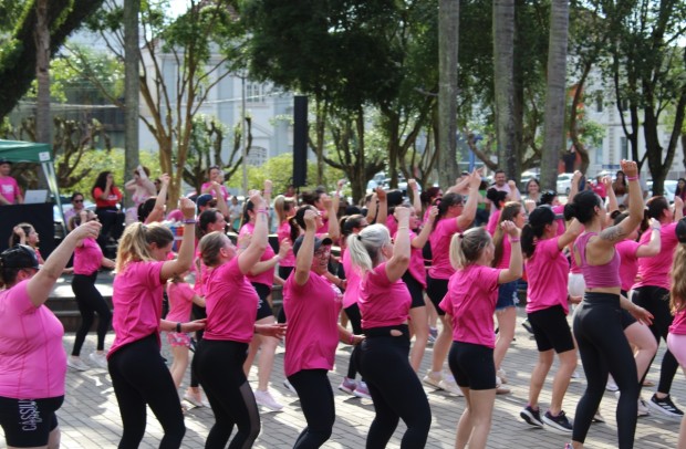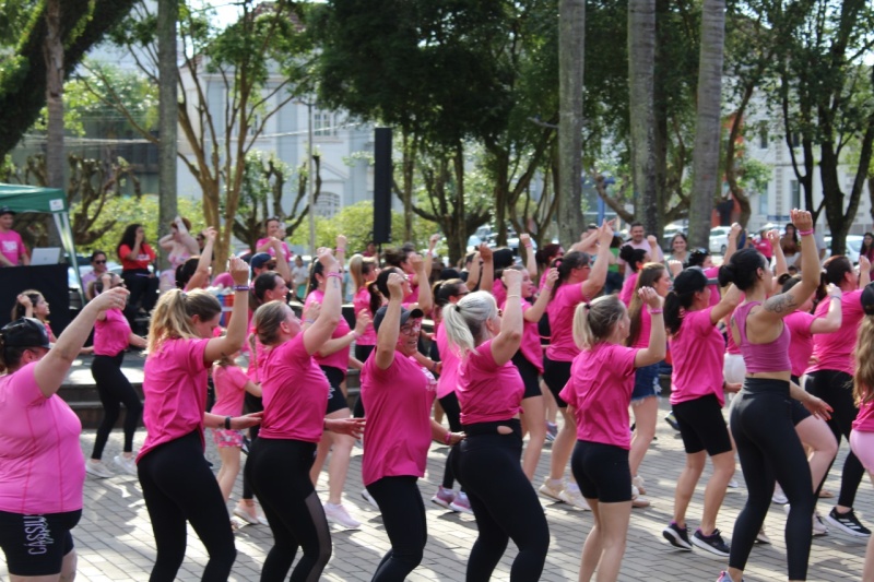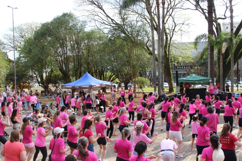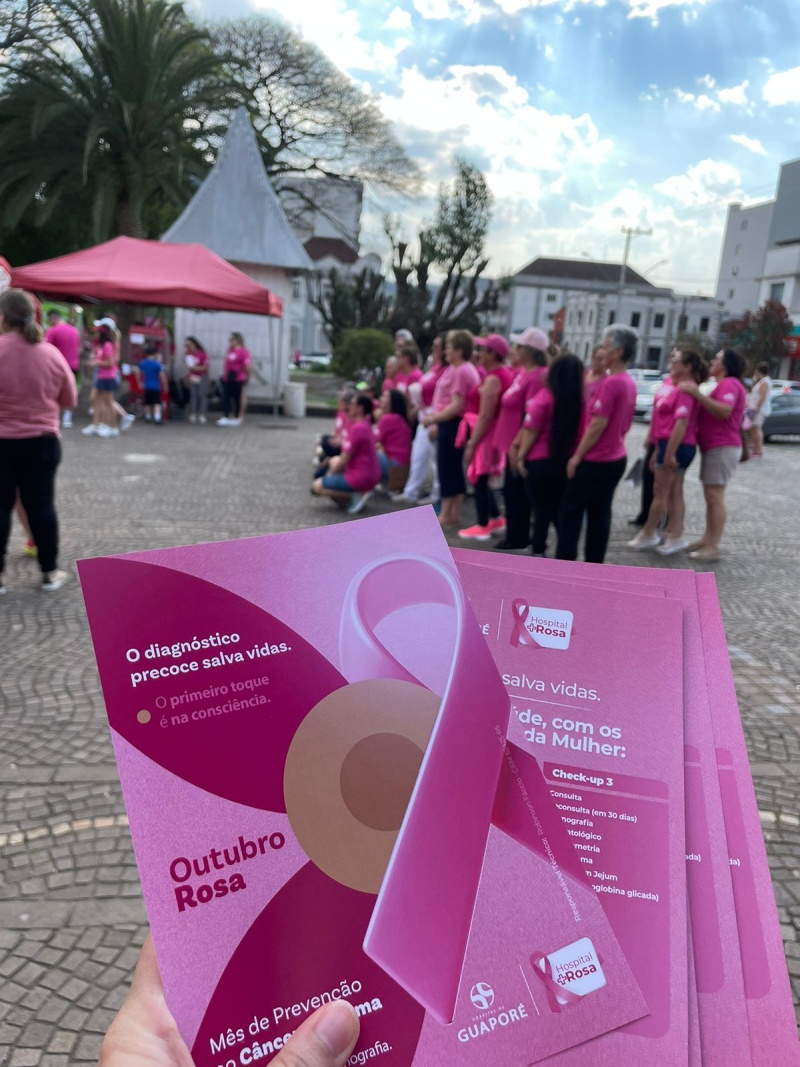 Evento, realizado na praça Vespasiano Corrêa, vestiu Guaporé de rosa para celebrar a solidariedade e o compromisso com a vida