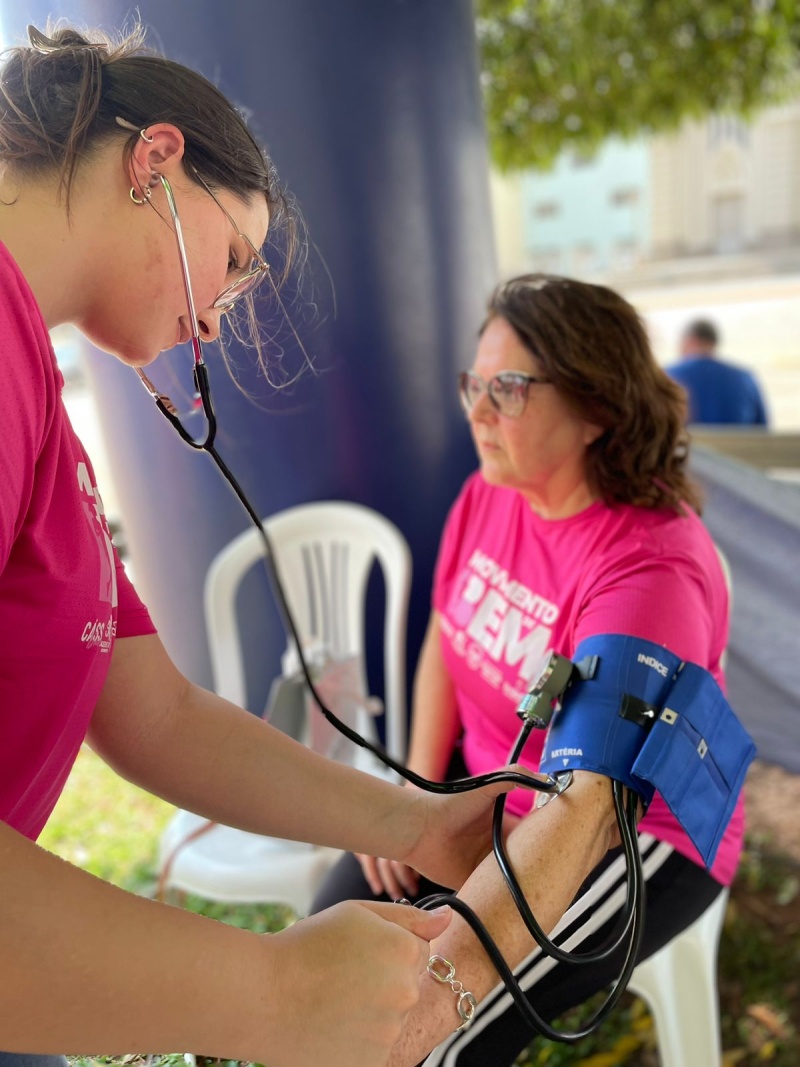 A Administração Municipal, por meio de suas secretarias e equipes, participou ativamente e apoiou o “Movimento do Bem”, reforçando seu compromisso com a promoção da saúde, do bem-estar e da valorização da vida. Durante a programação, o público pôde participar de atividades como música, corrida, zumba, roda de conversa, Quick Massage, Foto 360º, espaço dedicado às crianças e momentos de integração. Além disso, profissionais e voluntários estiveram presentes oferecendo orientações, atendimentos e informações sobre cuidados com a saúde das mulheres, demonstrando que cuidar também é um gesto de amor. O Hospital Manoel Francisco Guerreiro, por meio dos seus profissionais, realizou o agendamento de mamografias. Das mais de 150 pessoas que passaram pelo espaço da casa de saúde, 63 marcaram o exame. Testes de visão também foram ofertados por uma das empresas parceiras do evento.